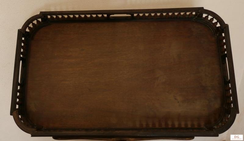 - Técnica Tabuleiro quadrangular com guarnição superior em pau santo, com quatro pegas.