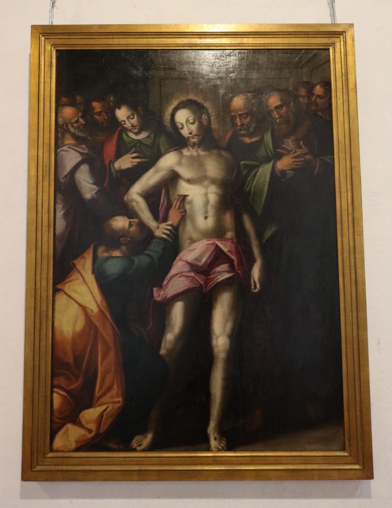 União matrimonial judaica dos dois esposos: à esquerda Maria, de túnica vermelha e manto azul, esten...