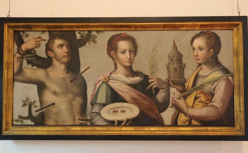 Painel transversal. Representação de três santos. Por ordem, da esquerda para a direita, S. Sebastiã...