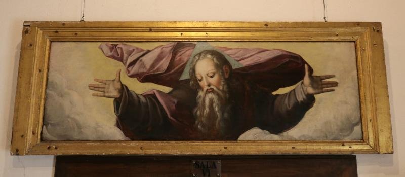 Painel transversal. Deus nele representado, sob a figura de um Homem barbudo que abre os braços. Por...
