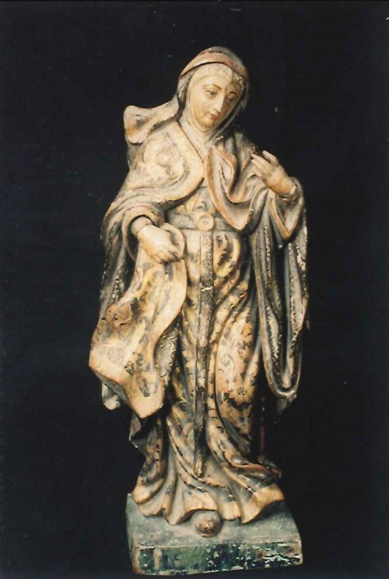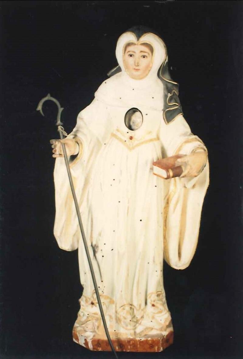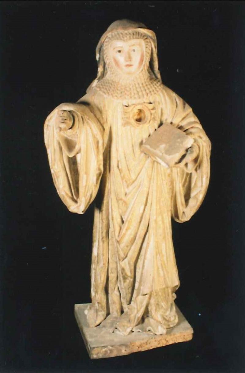 Escultura de vulto, representando A Rainha Santa Mafalda , de hábito cisterciense de largas mangas d...